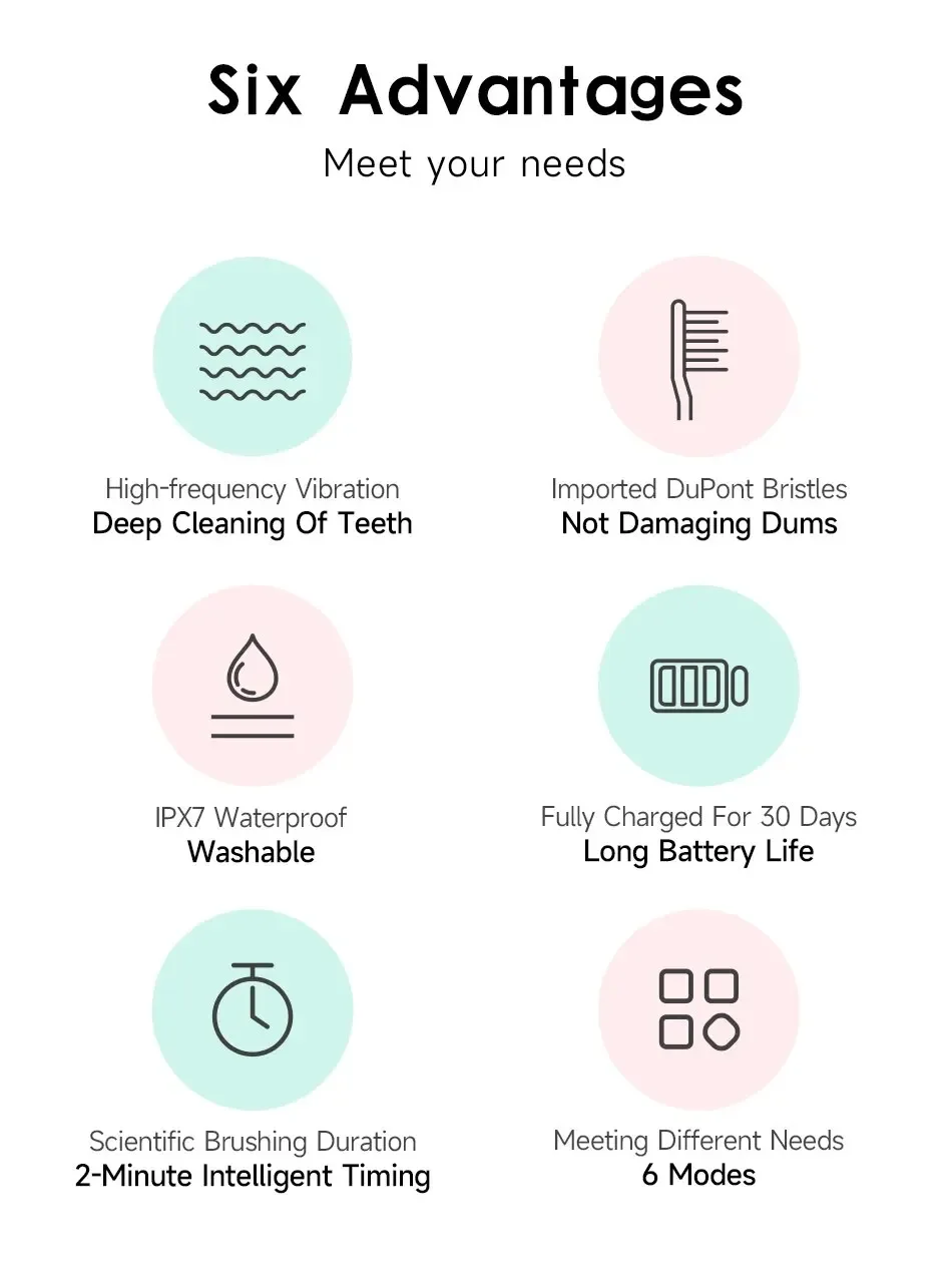 Scientific Brushing Duration 2-Minute Intelligent Timing;Meeting Different Needs 6 Modes;