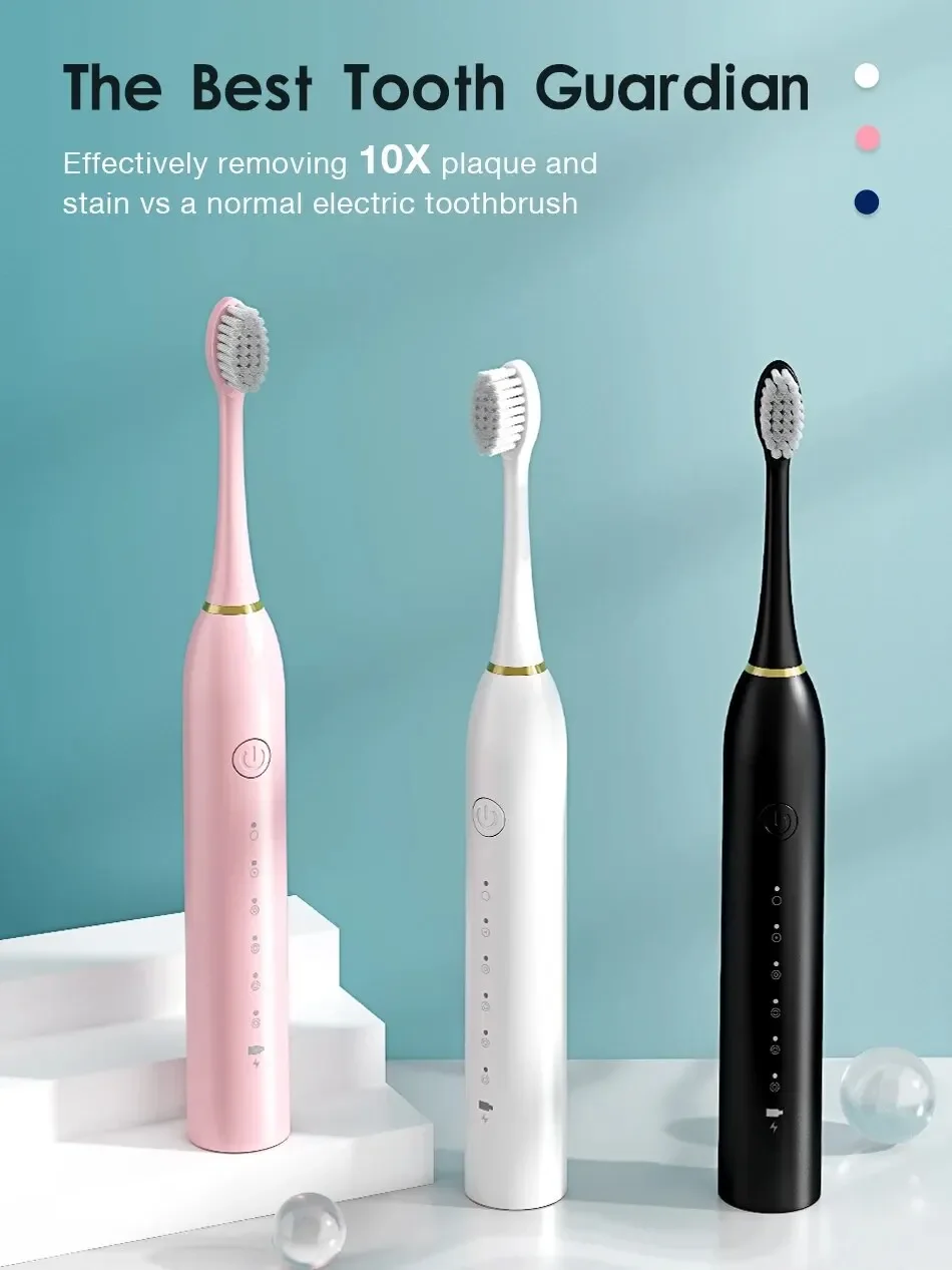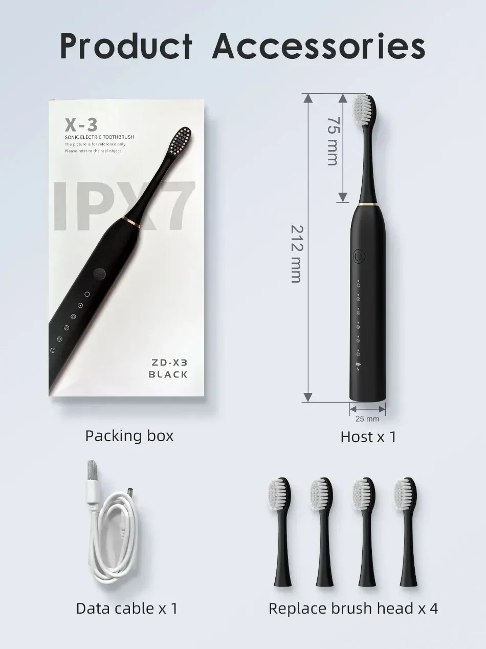 X-3 Upgraded Fully Automatic Sonic Electric Toothbrush With 6-speed Regulation USB Charging IPX7 Waterproof and 4 Brush Heads